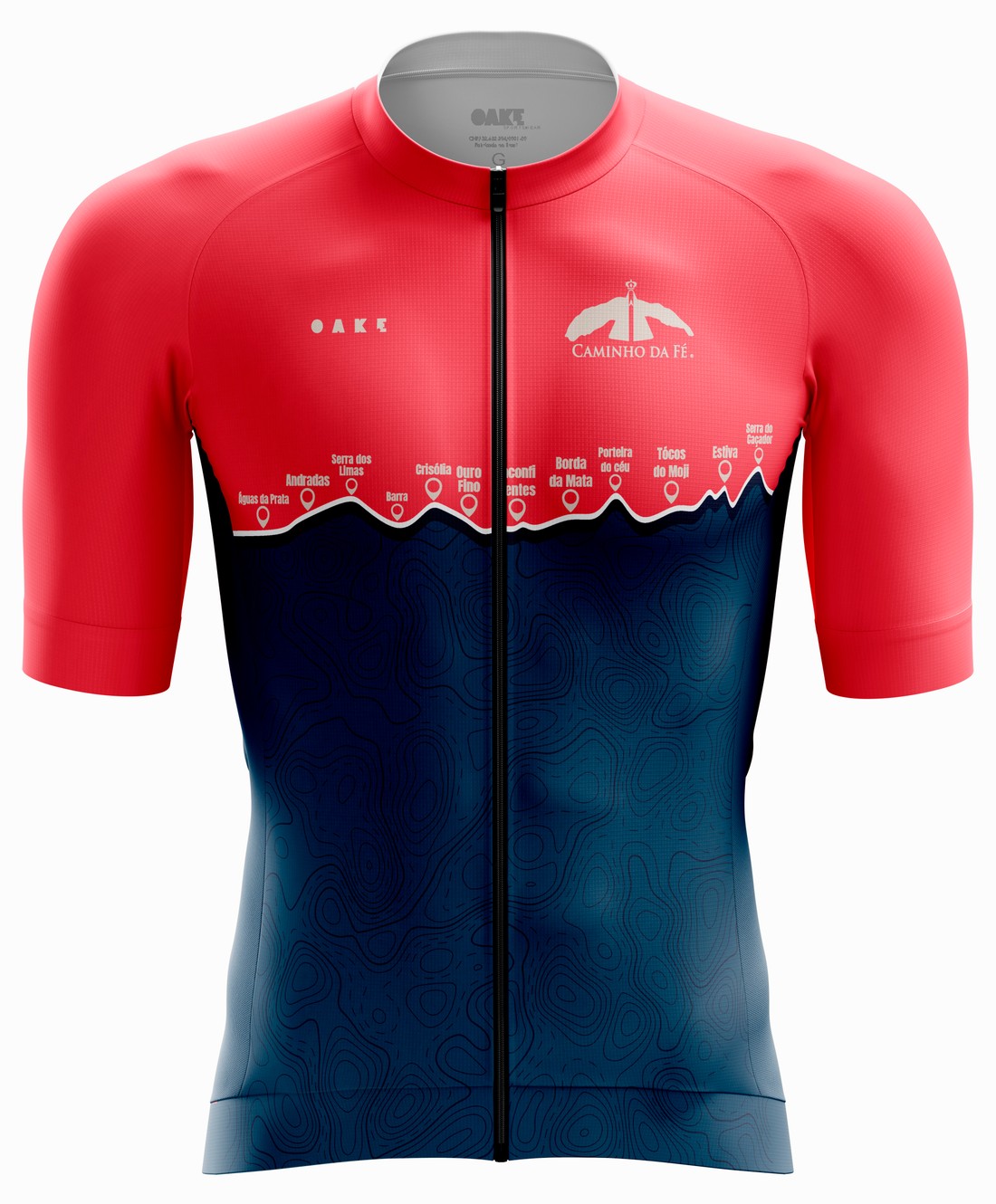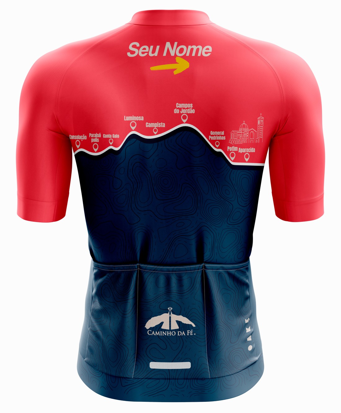 Camisa de Ciclismo Caminhos, inspirada nas cidades que fazem parte do Caminho da Fé Ramal Principal traz um design que simboliza toda a jornada, destacando o caminho percorrido e a conexão com cada cidade da rota.