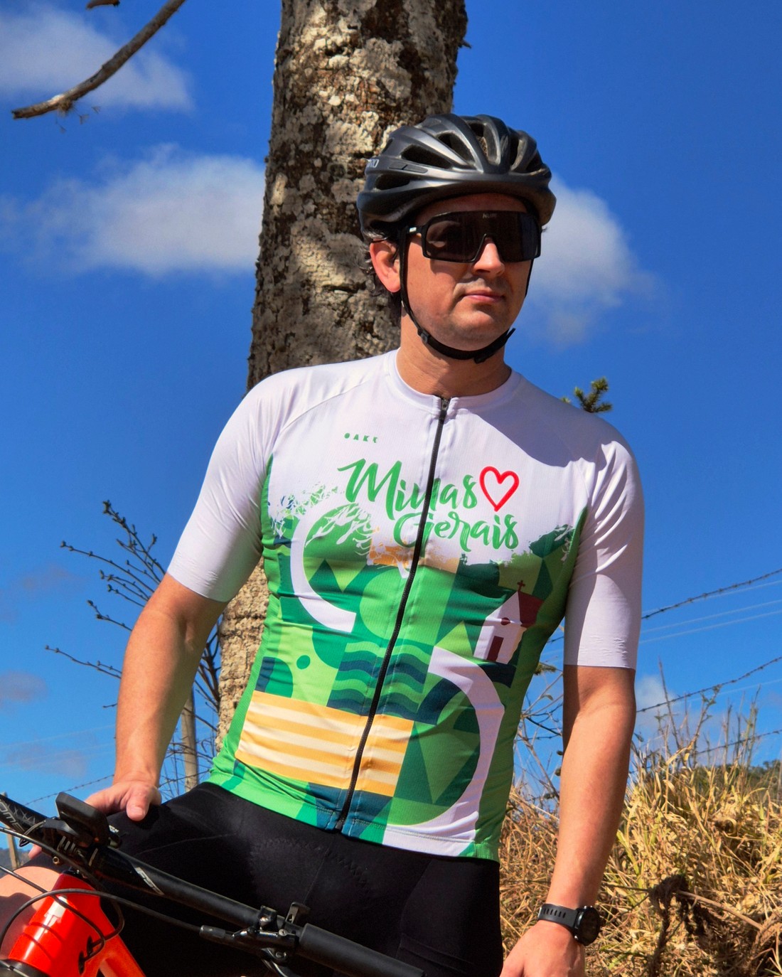 Inspirada nas montanhas, nas estradas de terra batida e no céu de ouro de Minas Gerais, esta camisa de ciclismo é um tributo à terra do pão de queijo, das igrejas e do espírito livre dos mineiros.