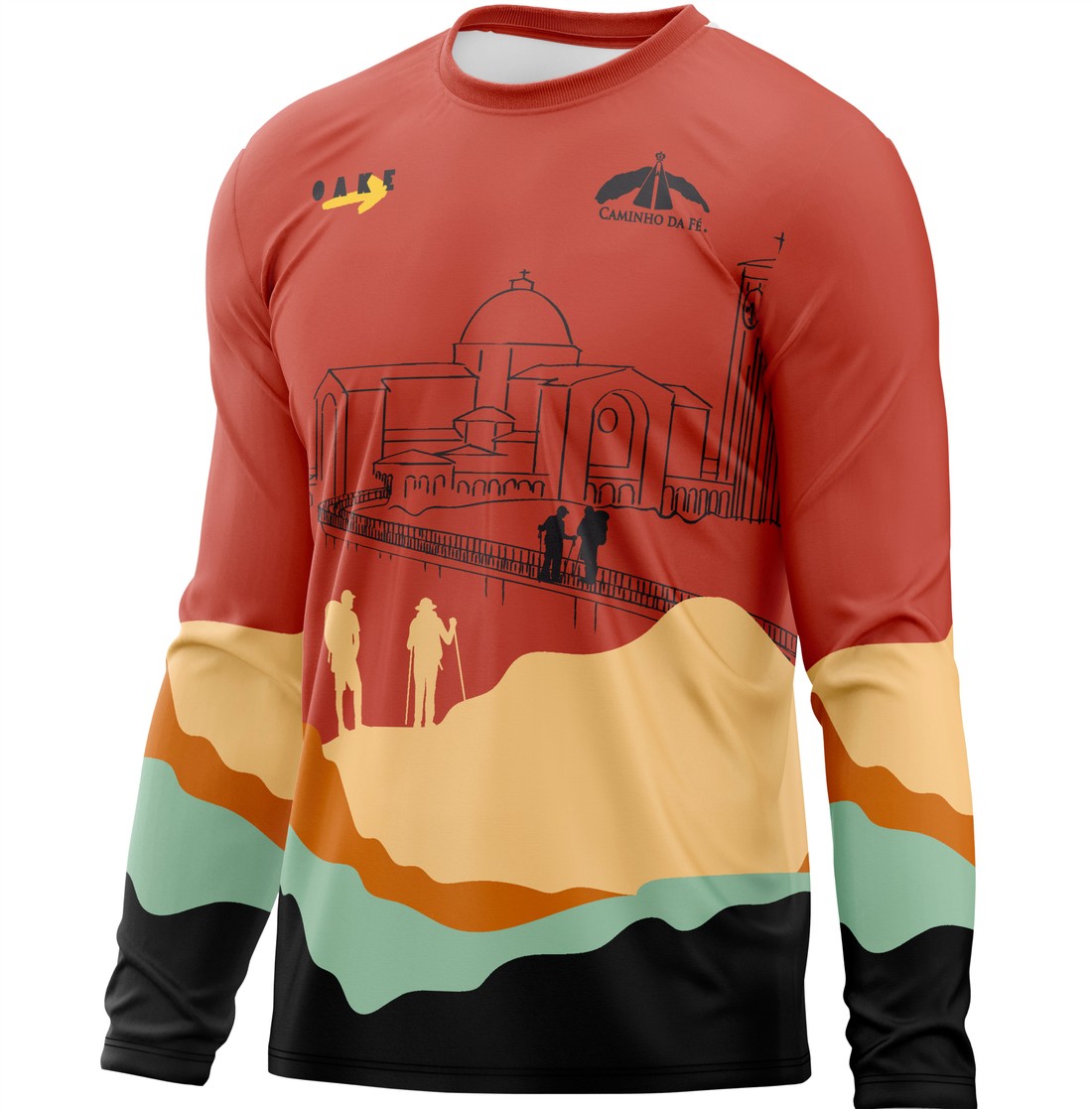 • Material: 90% Poliéster 10% Elastano • Tecnologia: Proteção Solar UV50+ • Tecido:Dryfit AirFlex+ Microfuros para máxima respiração, antiodor e secagem rápida • Conforto térmico:Auxilia na regulação da temperatura corporal, mantendo o corpo seco • Design:Corte a laser anatômico que permite liberdade de movimento • Uso ideal:Peregrinação, atividades ao ar livre e esportes