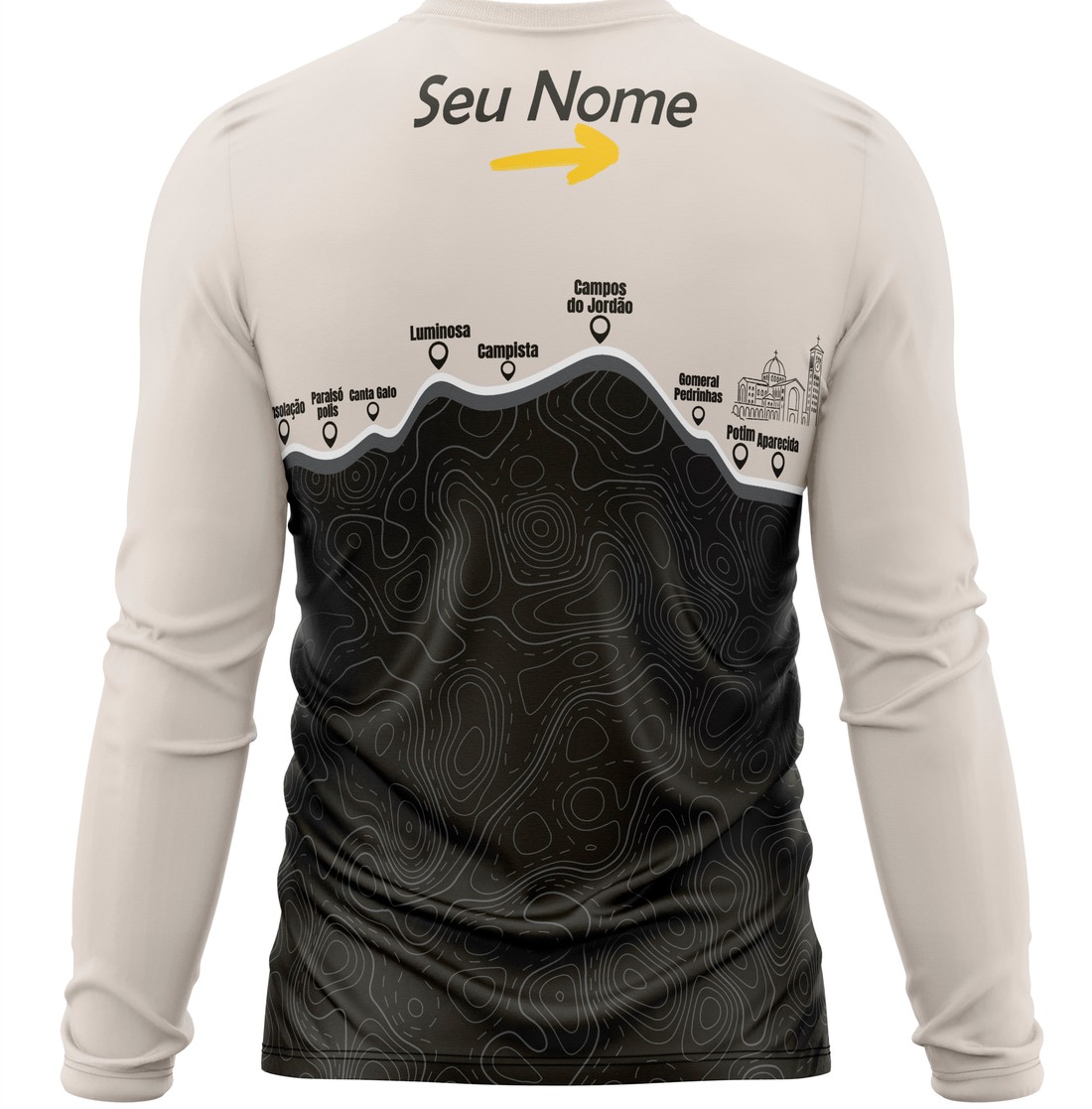 A camisa pode ser personalizada somente com nome. Basta inserir o nome desejado no campo “Personalização” durante a compra.