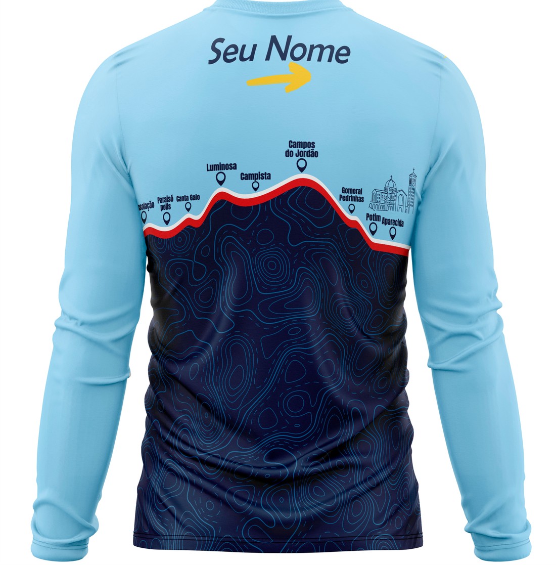 A camisa pode ser personalizada somente com nome. Basta inserir o nome desejado no campo “Personalização” durante a compra.